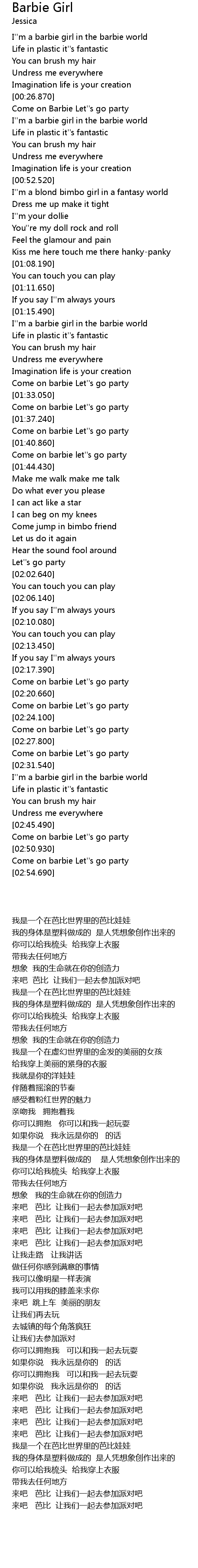 I''m a barbie girl in the barbie world |