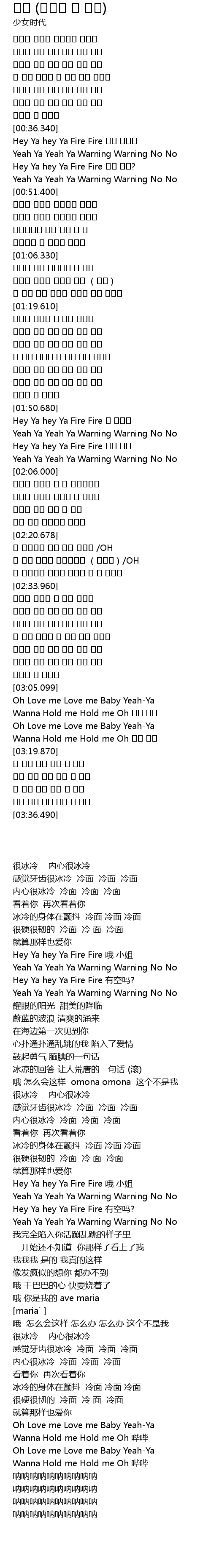 | [00:36.670] | Hey Ya hey Ya Fire Fire 시간 있어요 |