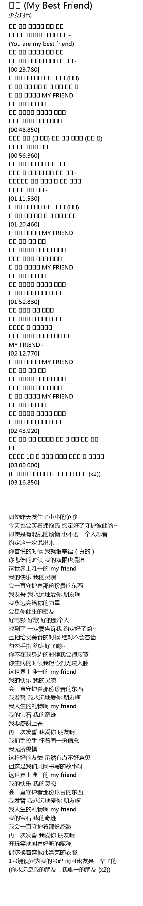 | [03:00.830] | (넌 영원한 나의 친구 단 하나뿐인 내 친구 (x2)) |
