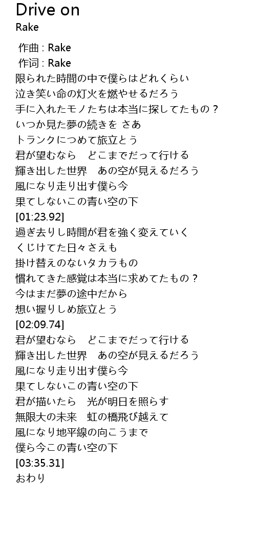 | [00:53.02] | 君が望むなら どこまでだって行ける |