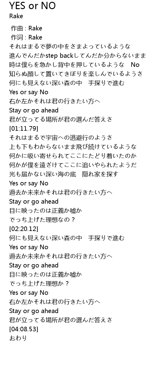 | [04:01.53] | 君が立ってる場所が君の選んだ答えさ |