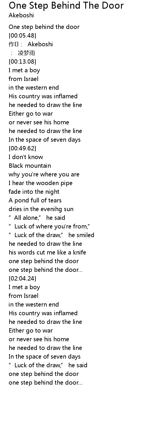 | [01:30.91] | ”Luck of the draw,” he smiled |