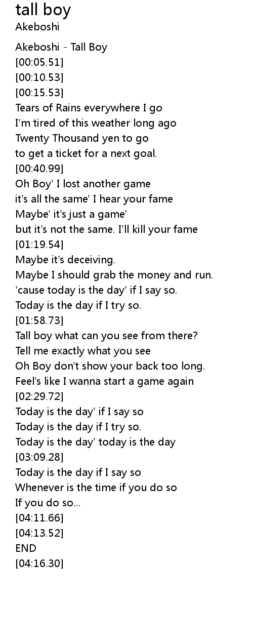 | [00:00.00] | Akeboshi - Tall Boy |