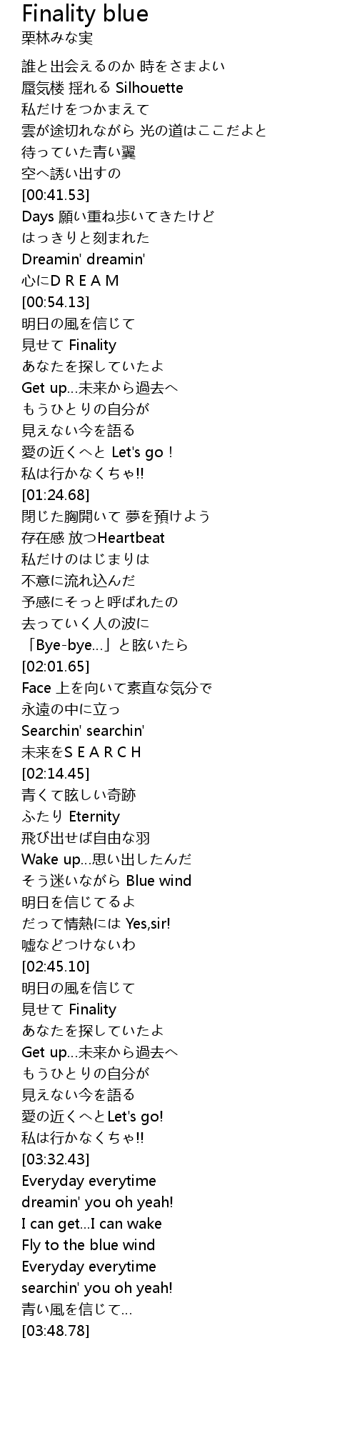 | [00:20.89] | 蜃気楼 揺れる Silhouette |