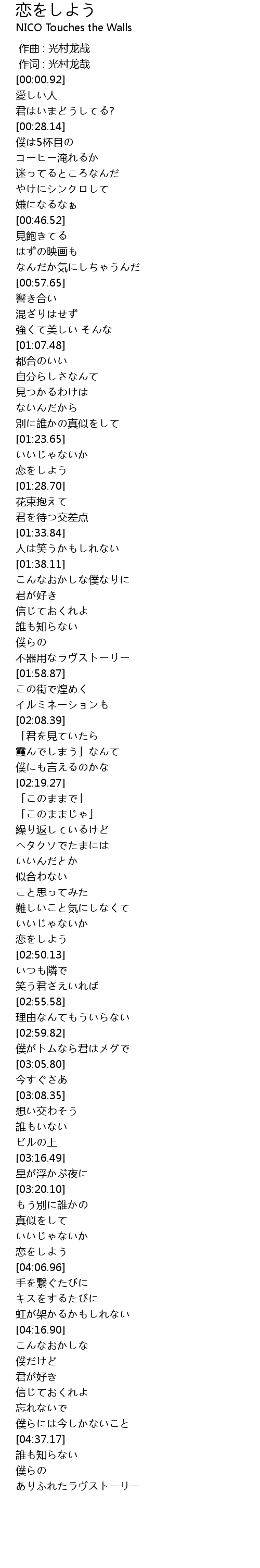 | [04:04.94] | 恋をしよう |