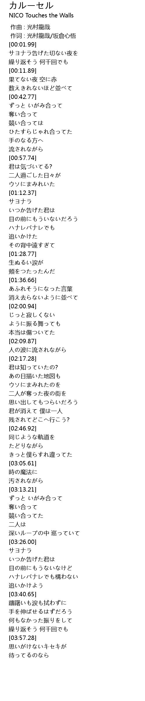 | [00:00.00] | 作曲 : 光村龍哉 |