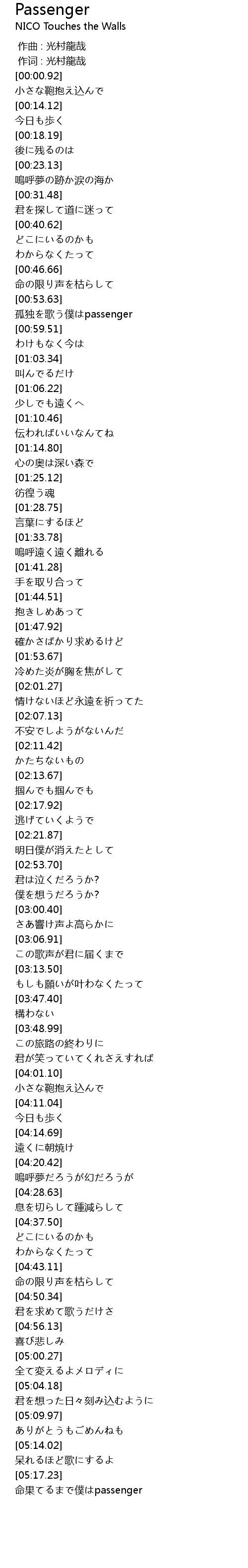 | [05:18.67] | 命果てるまで僕はpassenger |