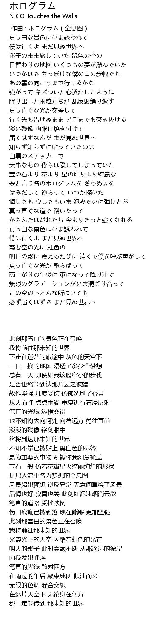 | [00:00.00] | 作曲 : ホログラム(全息图) |