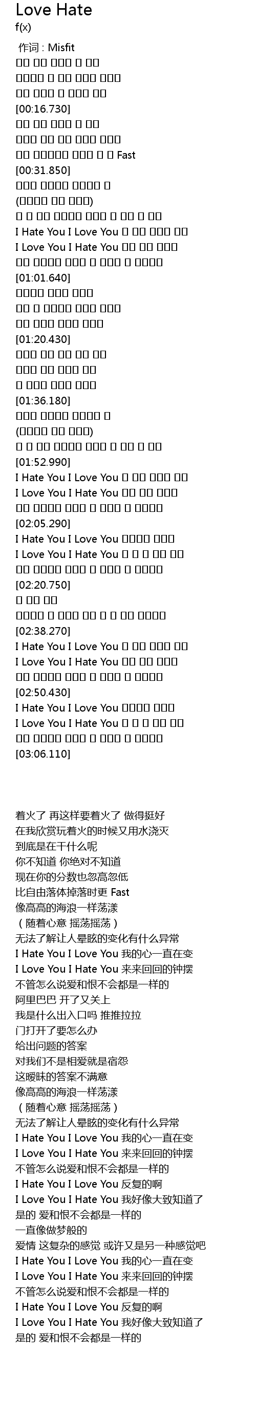 | [02:57.300] | I Love You I Hate You 난 알 것 같아 얼추 |