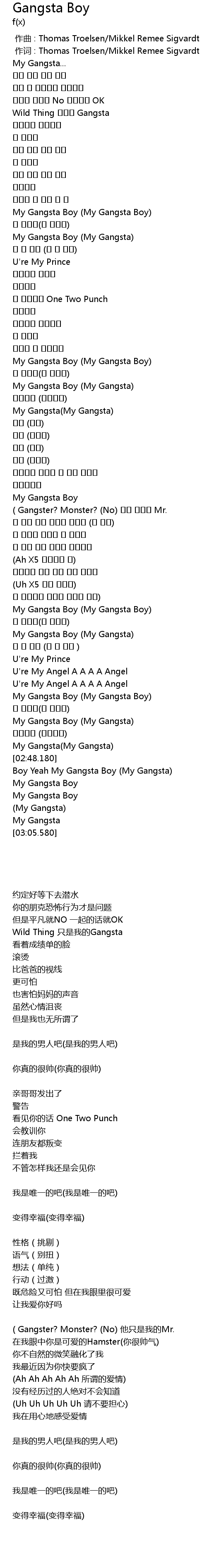 | [02:03.040] | My Gangsta Boy (My Gangsta Boy) |