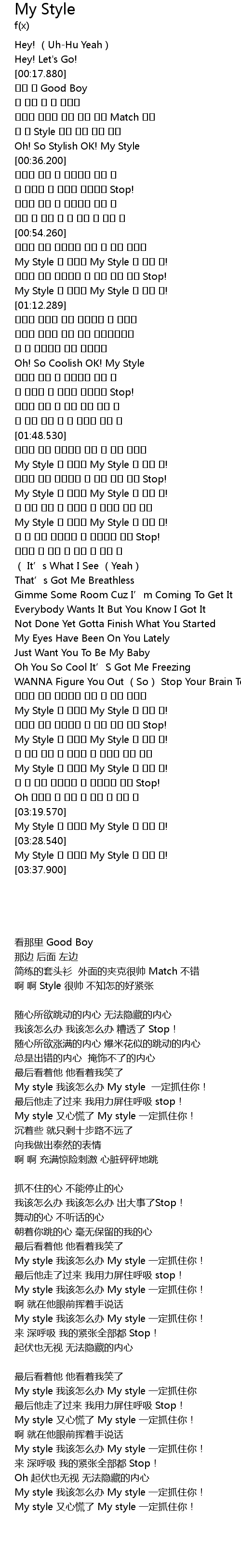 | [02:56.720] | My Style 또 두근대 My Style 콕 찍어 너! |