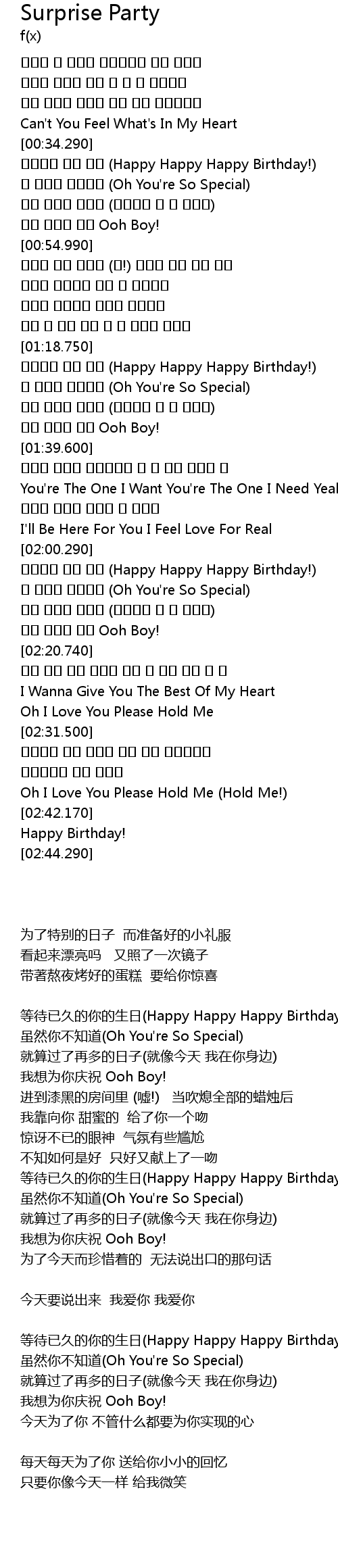 | [02:00.620] | 기다려온 너의 생일 (Happy Happy Happy Birthday!) |