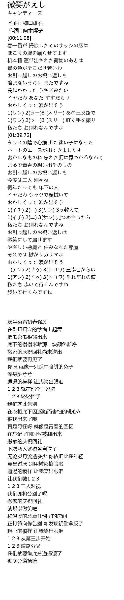 | [00:44.39] | お引っ越しのお祝い返しも |