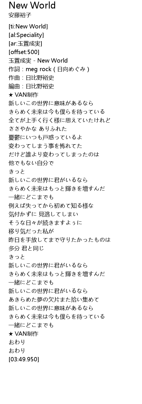 | [02:54.470] | 新しいこの世界に君がいるなら |