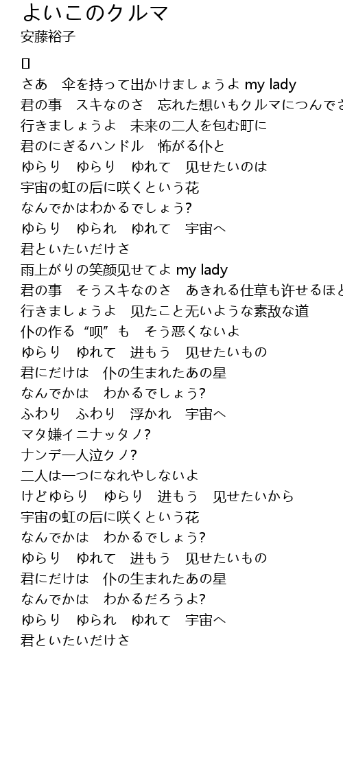 | 君の事 スキなのさ 忘れた想いもクルマにつんでさ | |