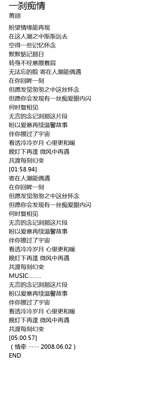 | [05:03.38] | (情牵 ---- 2008.06.02) |