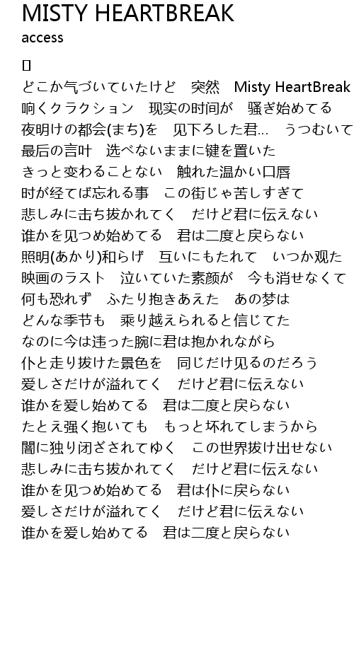 | どこか气づいていたけど 突然 Misty HeartBreak | |