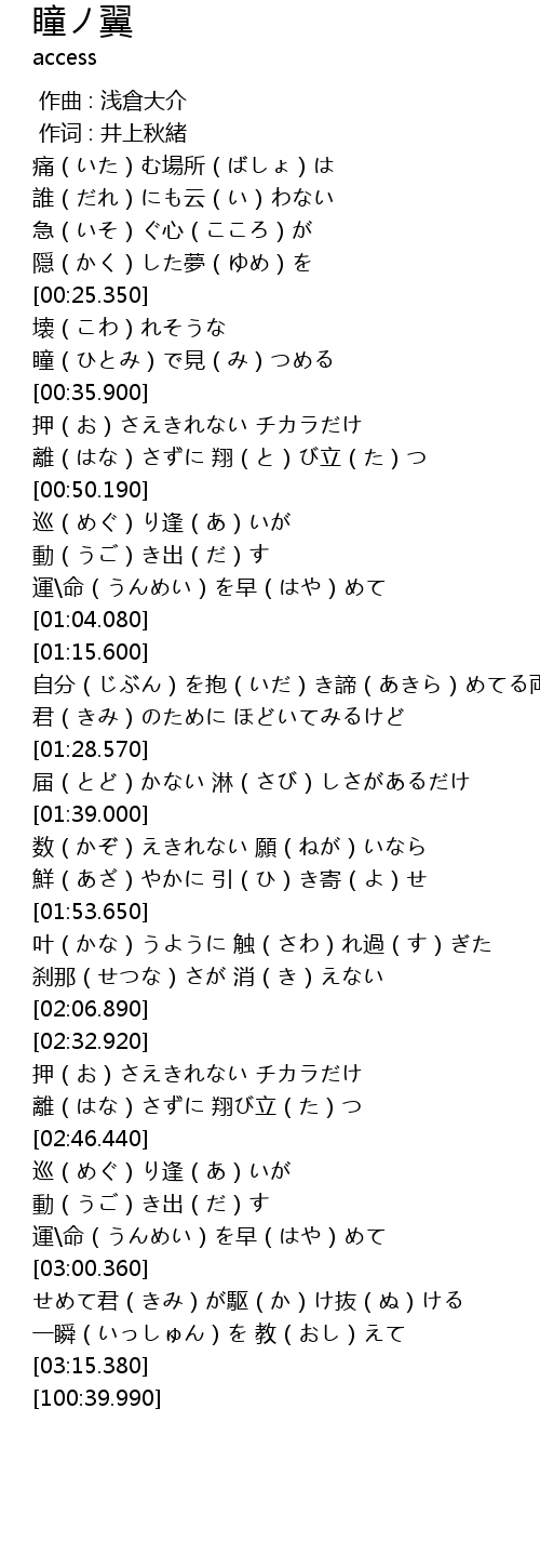 | [03:01.440] | せめて君(きみ)が駆(か)け抜(ぬ)ける |