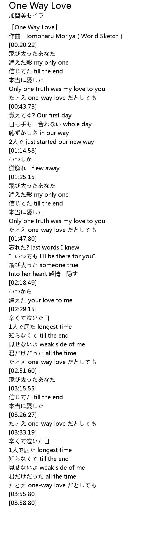 | [00:11.22] | zuo qu Tomoharu Moriya World Sketch |