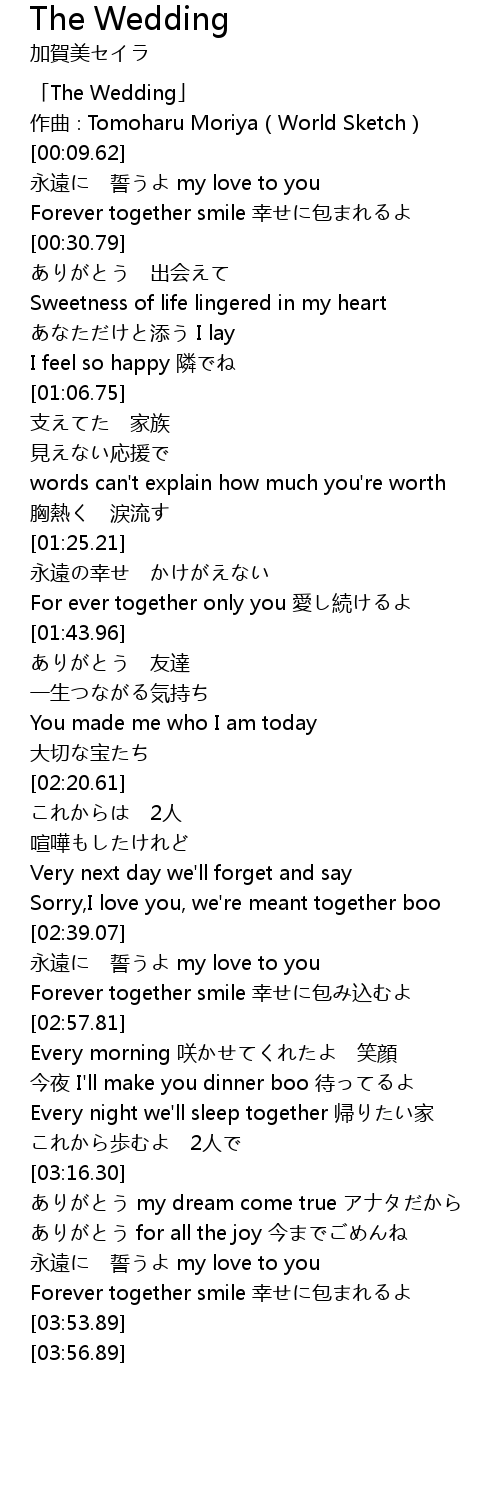 | [00:01.62] | 「The Wedding」 |