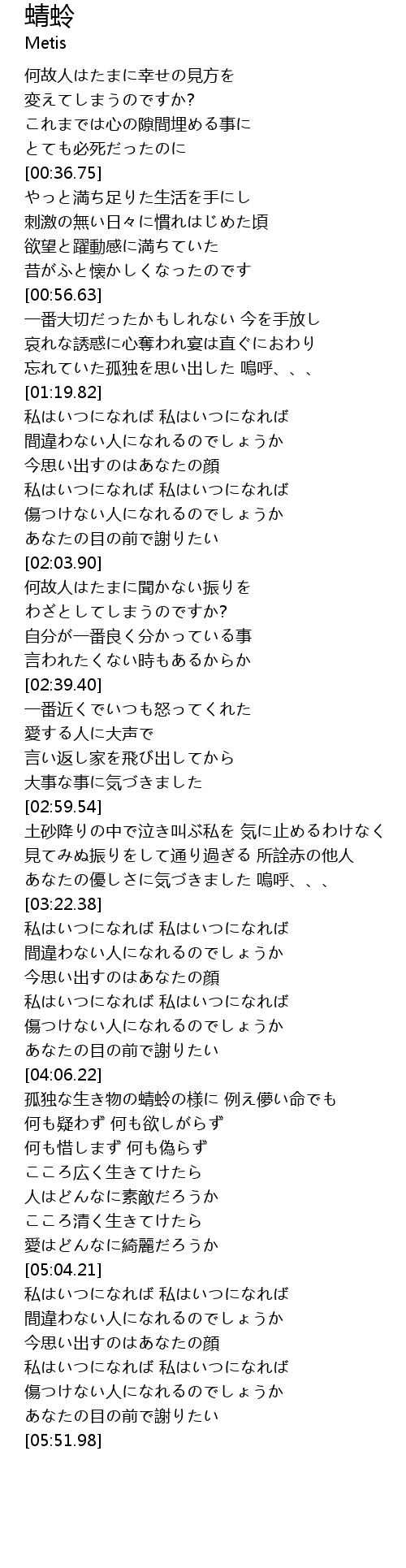 | [04:28.06] | 孤独な生き物の蜻蛉の様に 例え儚い命でも |