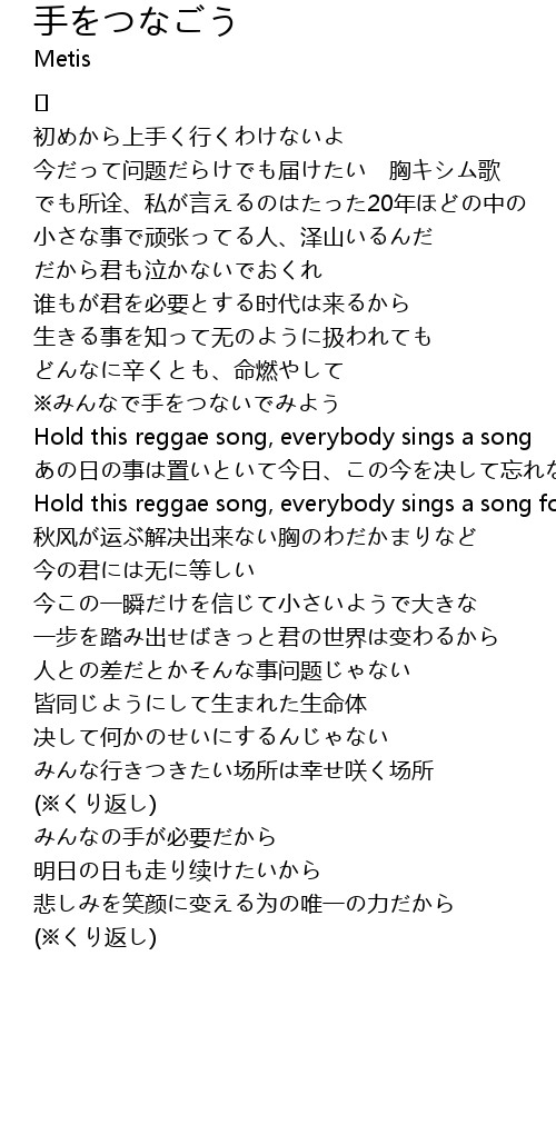 | Hold this reggae song, everybody sings a song for you※ | |