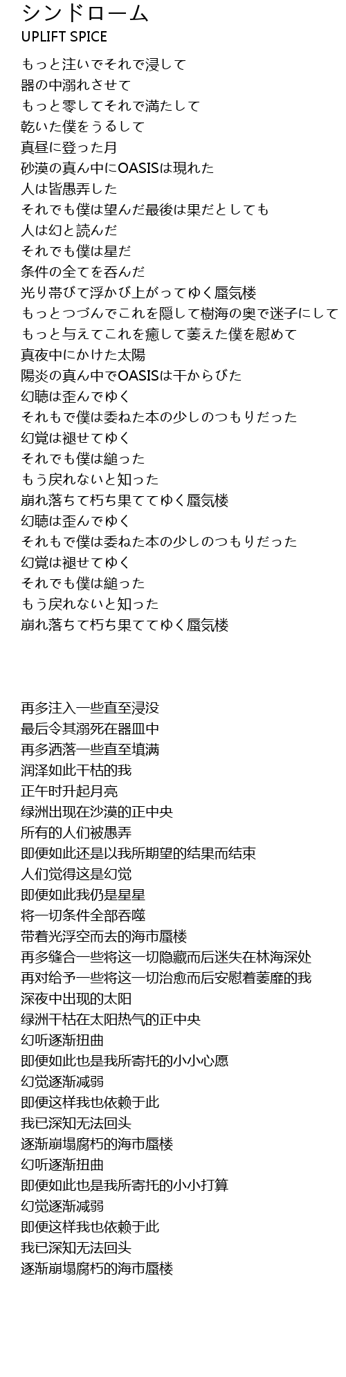 | [01:44.07] | 陽炎の真ん中でOASISは干からびた |