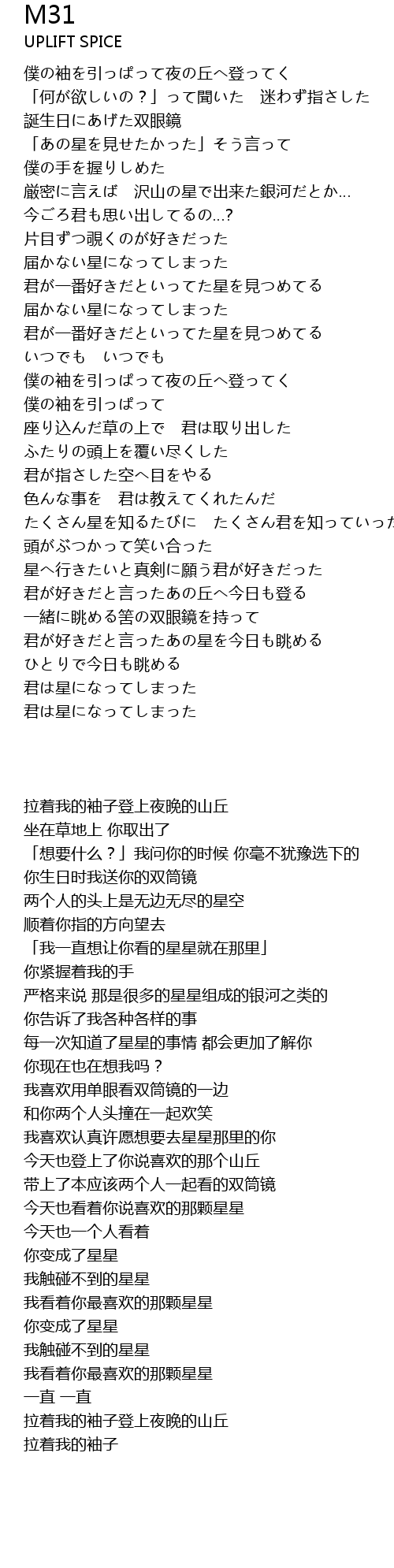 | [03:37.9] | 君が好きだと言ったあの星を今日も眺める |