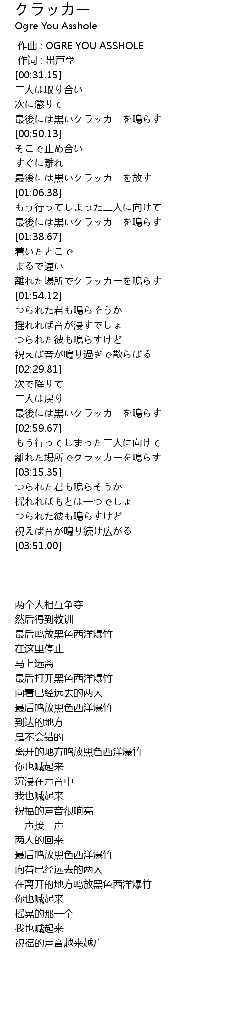 | [00:00.00] | zuò qǔ : OGRE YOU ASSHOLE |