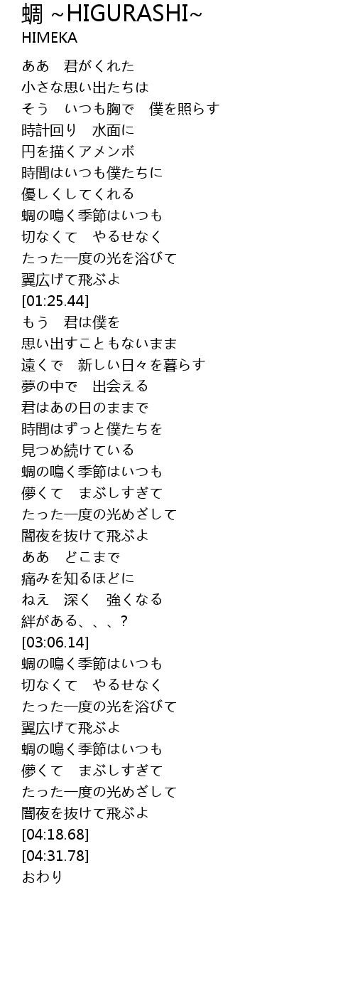 tiao HIGURASHI Lyrics