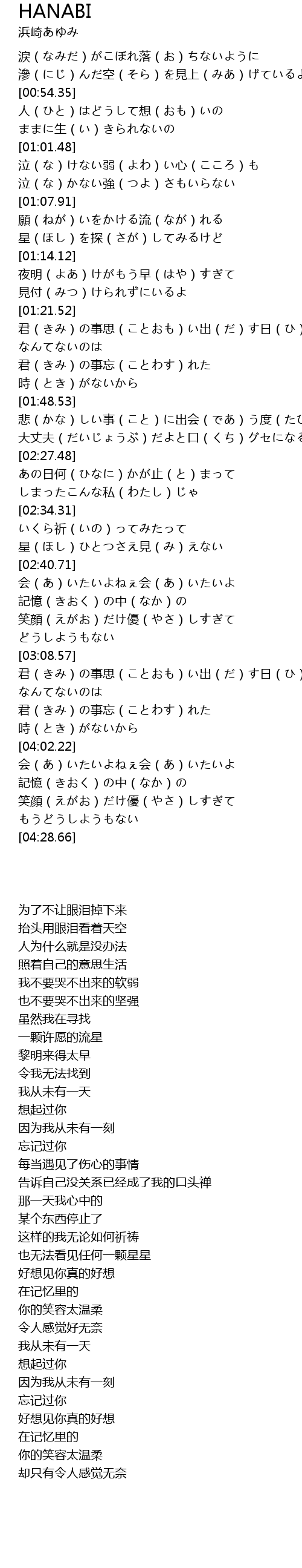 | [01:08.11] | 願(ねが)いをかける流(なが)れる |