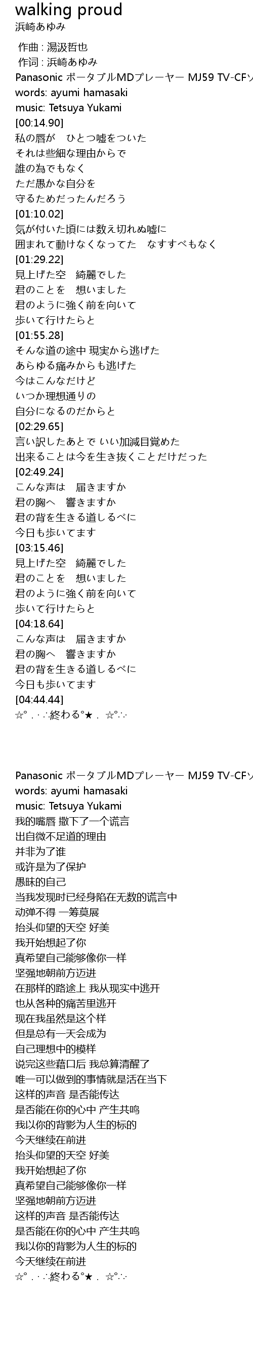 | [00:00.338] | 作词 : 浜崎あゆみ |