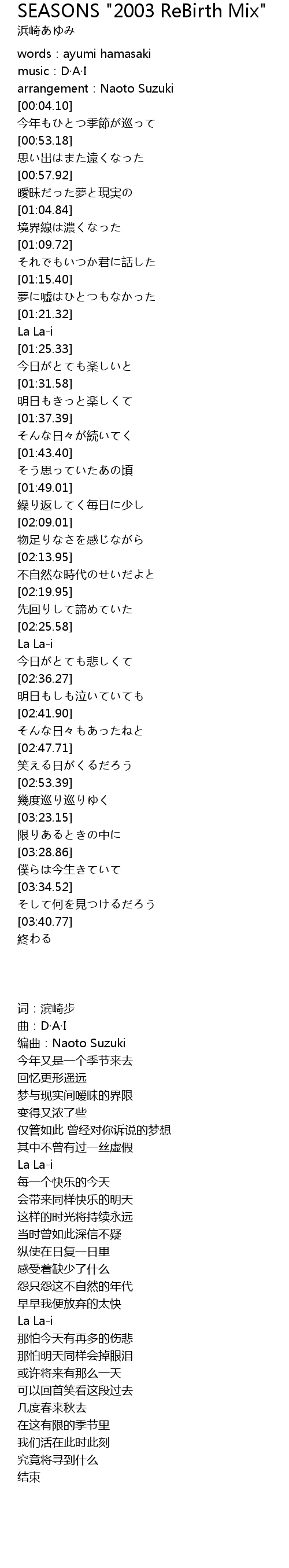 | [00:02.98] | arrangement: Naoto Suzuki |