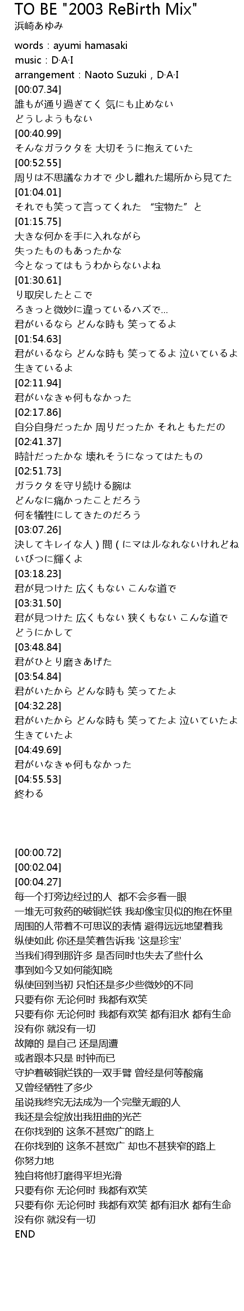 | [00:04.27] | arrangement: Naoto Suzuki, D A I |