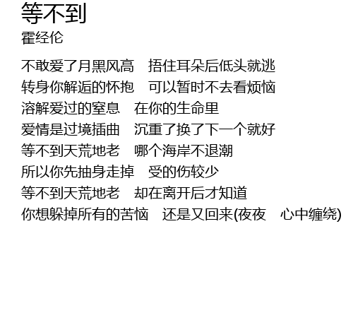 | 等不到天荒地老 却在离开后才知道 | |