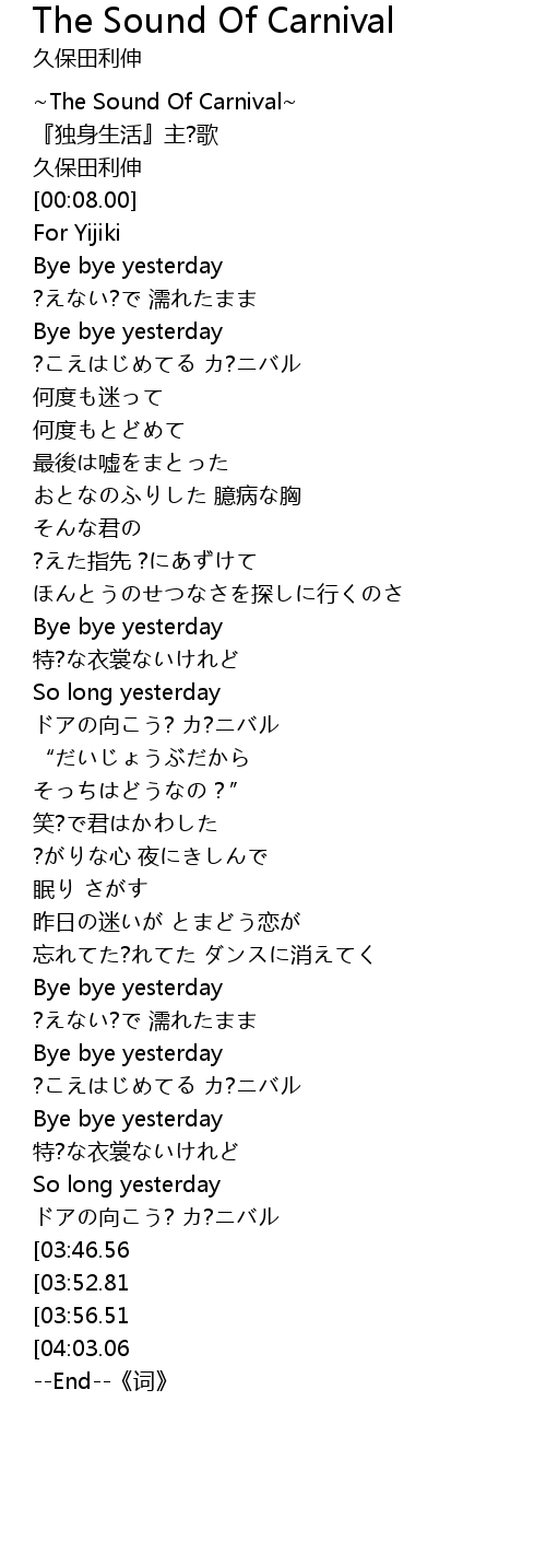 | [00:02.00] | ~The Sound Of Carnival~ |