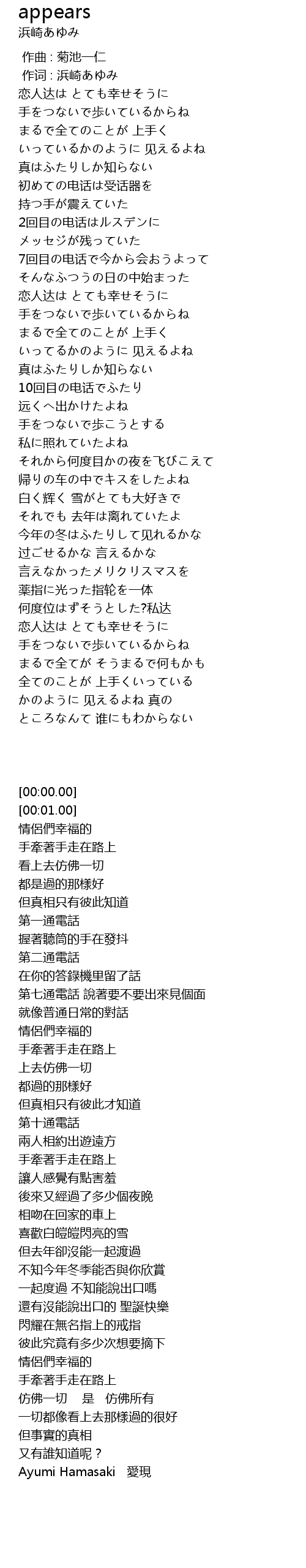 | [00:01.00] | 作词 : 浜崎あゆみ |