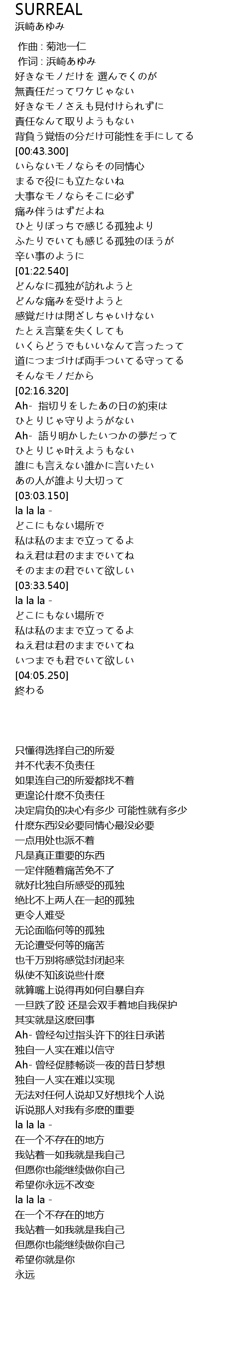 | [00:01.00] | 作词 : 浜崎あゆみ |