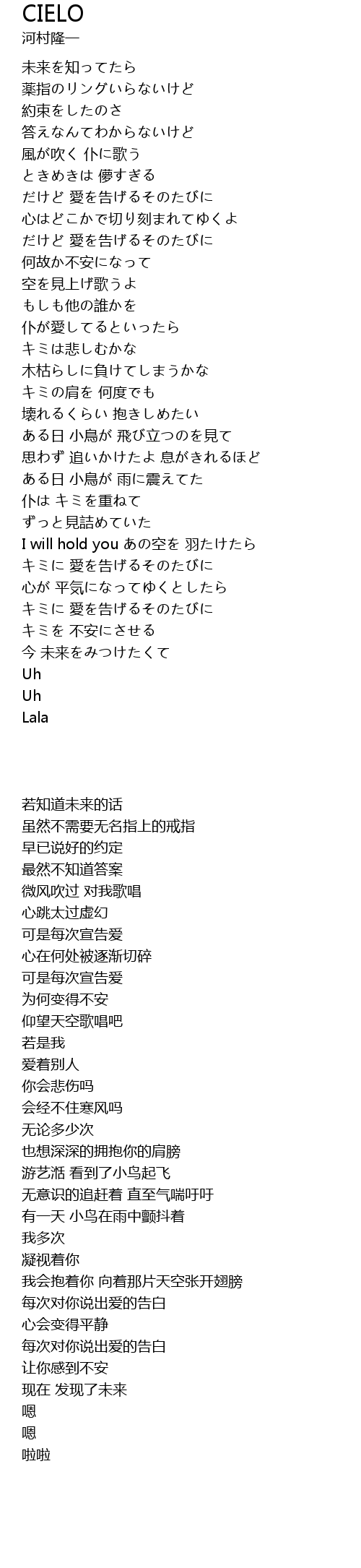| [02:22.89] | ある日 小鳥が 飛び立つのを見て |