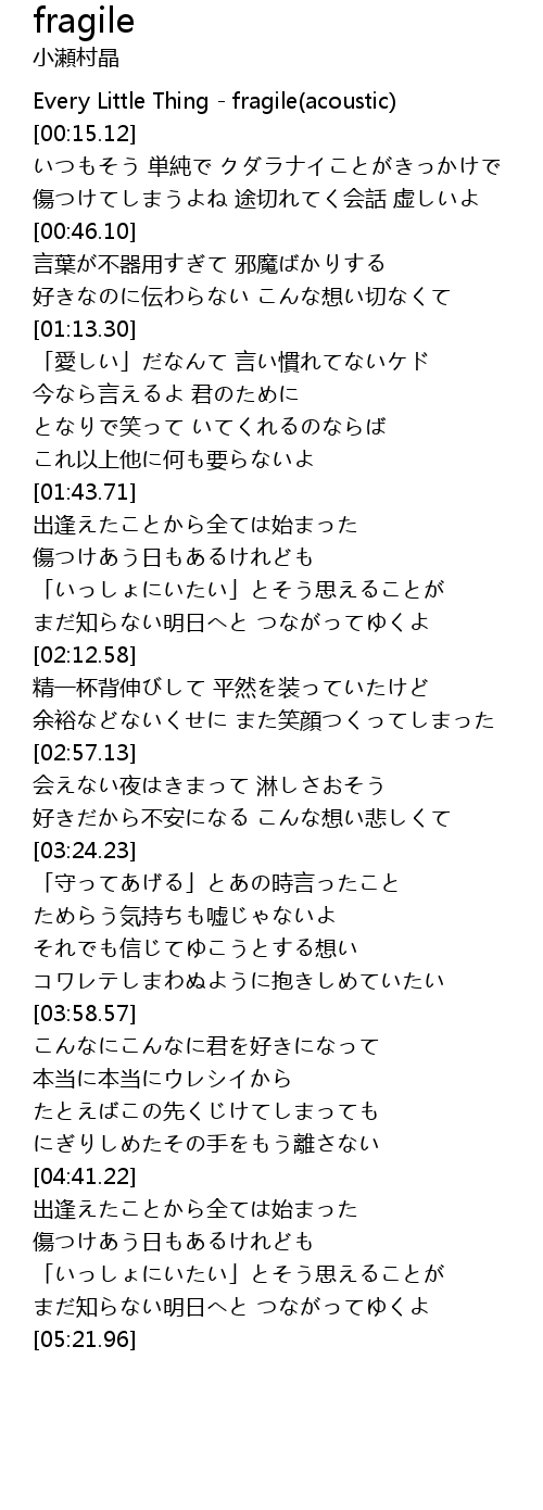 | [00:00.00] | Every Little Thing - fragile(acoustic) |