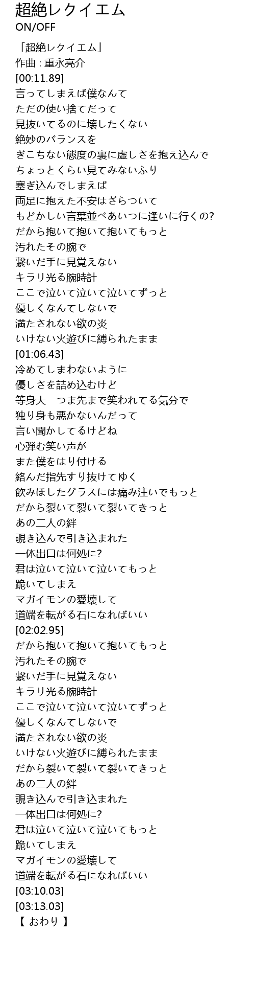 | [00:03.89] | 「超絶レクイエム」 |
