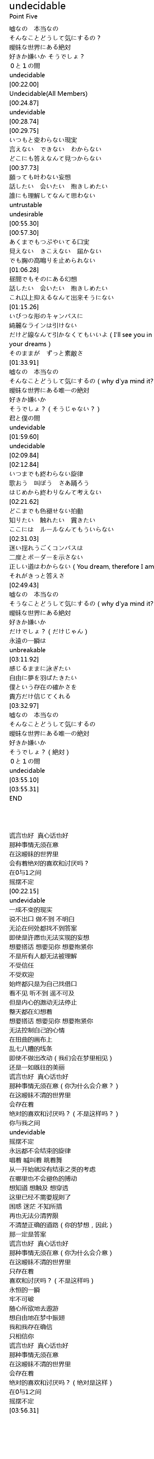 | [01:43.58] | 曖昧な世界にある唯一の絶対 |