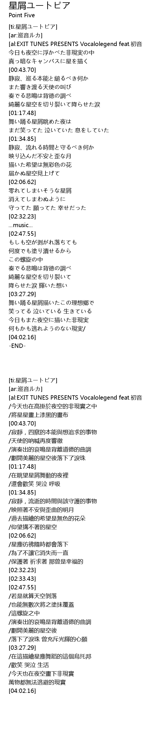 | [ti:星屑ユートピア] | |