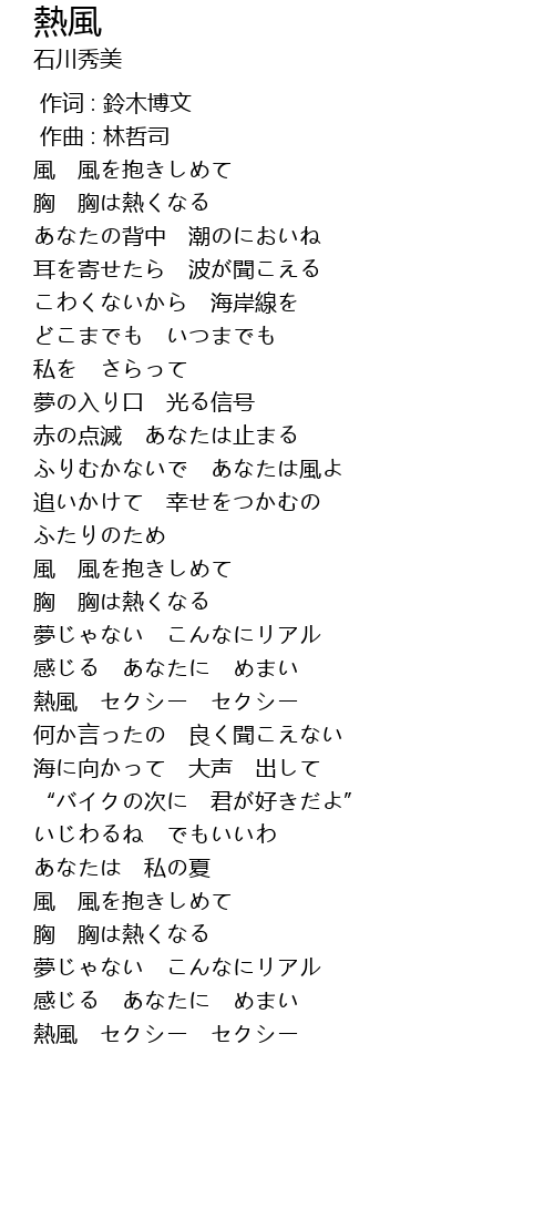 | [01:17.257] | ふりむかないで あなたは風よ |