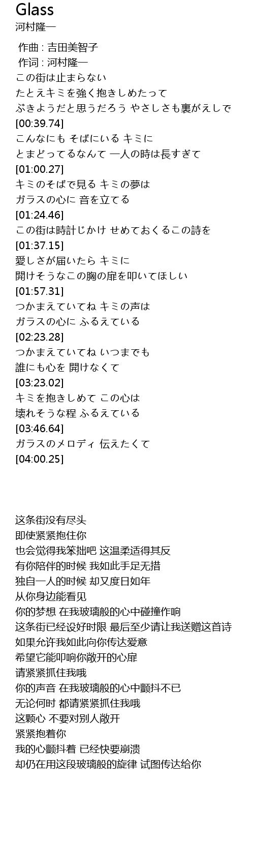| [03:48.68] | ガラスのメロディ 伝えたくて |