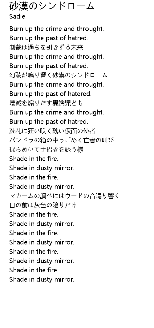 | [00:41.278] | 幻聴が鳴り響く砂漠のシンドローム |