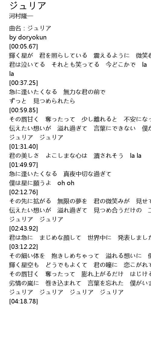 | [04:04.80] | ジュリア ジュリア ジュリア ジュリア |