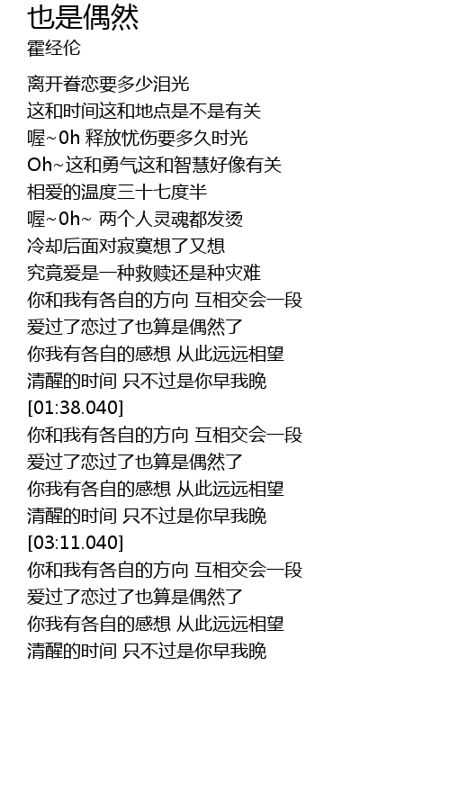| [03:25.930] | 爱过了恋过了也算是偶然了 |