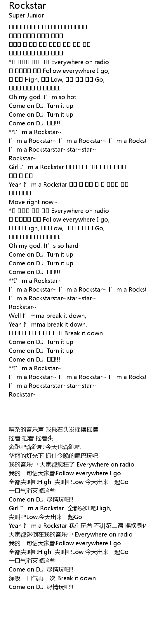 | [01:10.100] | I' m a Rockstarstar star star |