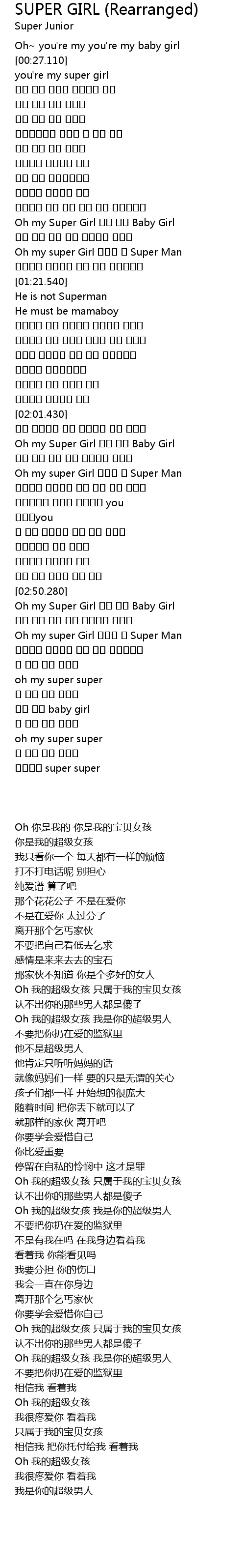 | [02:06.800] | Oh my Super Girl 오직 나의 Baby Girl |